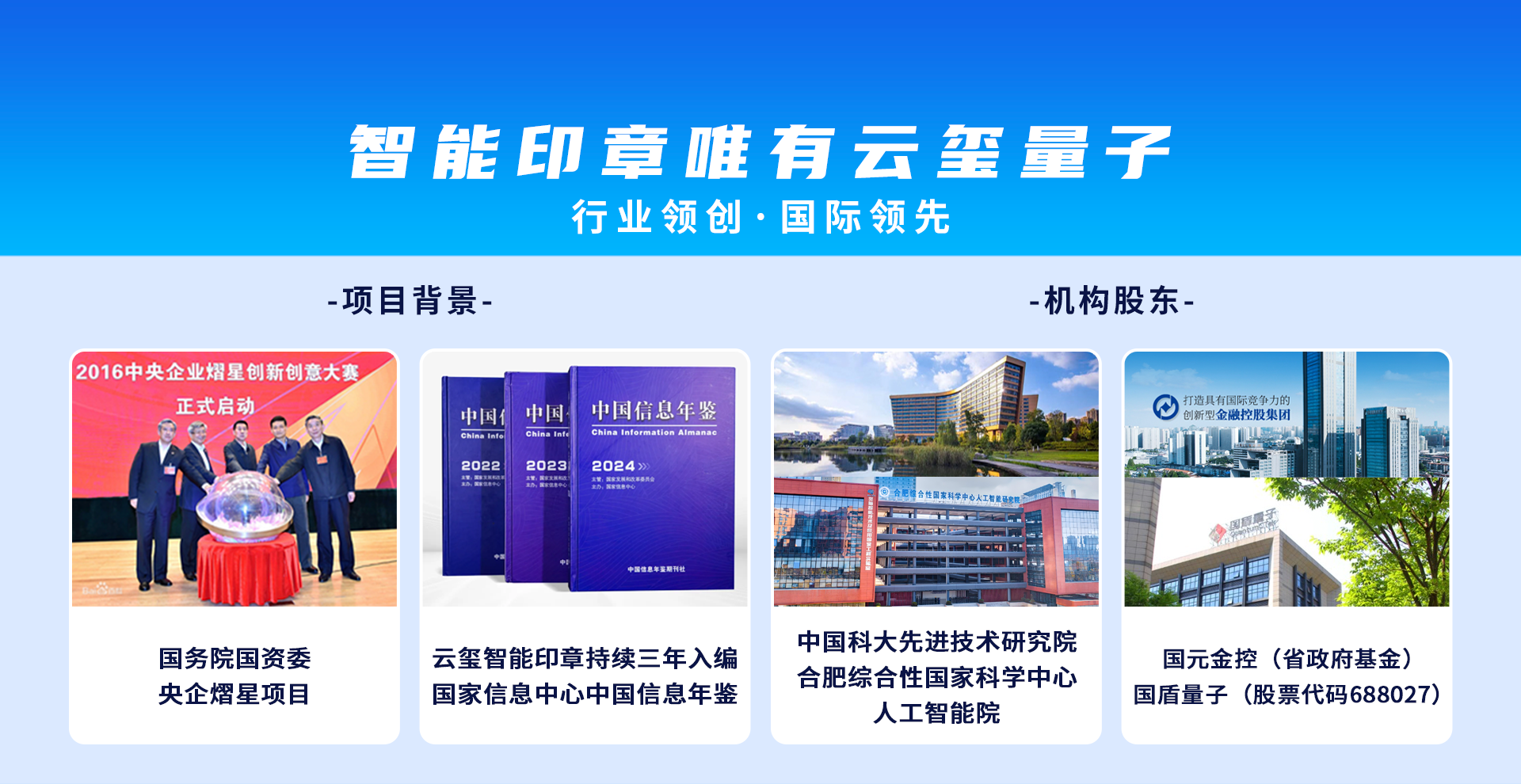 云璽量子是合肥市量子信息產(chǎn)業(yè)重點(diǎn)企業(yè),國(guó)家信創(chuàng)工委會(huì)成員企業(yè),中國(guó)信創(chuàng)500強(qiáng)企業(yè)。主營(yíng)業(yè)務(wù)包括量子安全智能印簽、量子安全智能辦公、量子安全云服務(wù),為政企客戶(hù)提供量子安全整體解決方案。