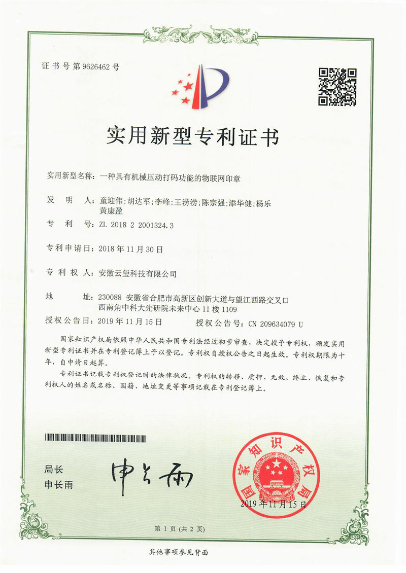 公司原創(chuàng)發(fā)明一體式智能印章技術(shù),引領(lǐng)國(guó)內(nèi)外新一代智能印簽創(chuàng)新變革。獲中日韓多項(xiàng)發(fā)明專(zhuān)利,徹底解決了實(shí)體印章和電子印簽管控的社會(huì)難題,獲國(guó)務(wù)院國(guó)資委全國(guó)央企熠星二等獎(jiǎng)。公司聯(lián)合國(guó)家信息安全產(chǎn)品認(rèn)證中心、公安部三所、信通院、中國(guó)印章協(xié)會(huì)等,主導(dǎo)起草了行業(yè)首個(gè)智能印章安全認(rèn)證標(biāo)準(zhǔn)和智能印章產(chǎn)品標(biāo)準(zhǔn),引領(lǐng)了智能印章行業(yè)發(fā)展。